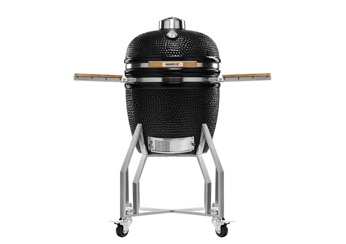 A Kamado Chef 19 tökéletes választás grillezésre, BBQ-zásra vagy akár kemenceként való használatra. Akár 400 fokra is felfűthető, masszív, 3 cm vastag kerámia falának és fémszálas tömítéses, hővédős kéményének köszönhetően a hőtartása és teljesítménye kiemelkedő. Kétszintű rácstartó állvánnyal és egy praktikus magasító állvánnyal rendelkezik, a csomag részét képezi egy felezhető faszéntartó kosár is, amely biztosítja a remek hőáramlást.