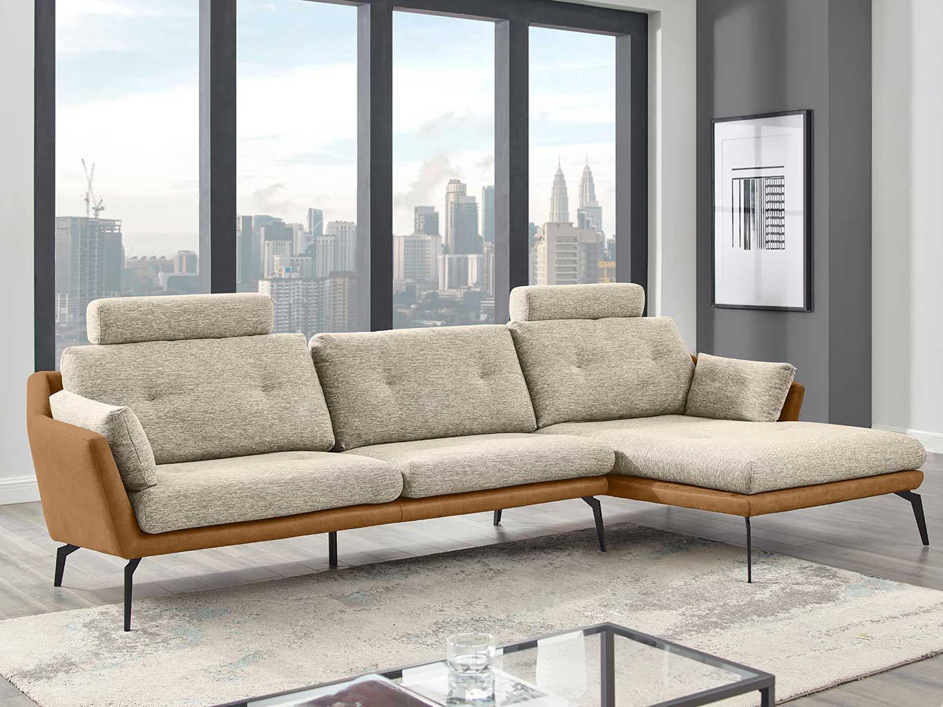 3 személyes kanapé bal oldali karfával + jobb oldali sarokrésszel (rekamié karfával)