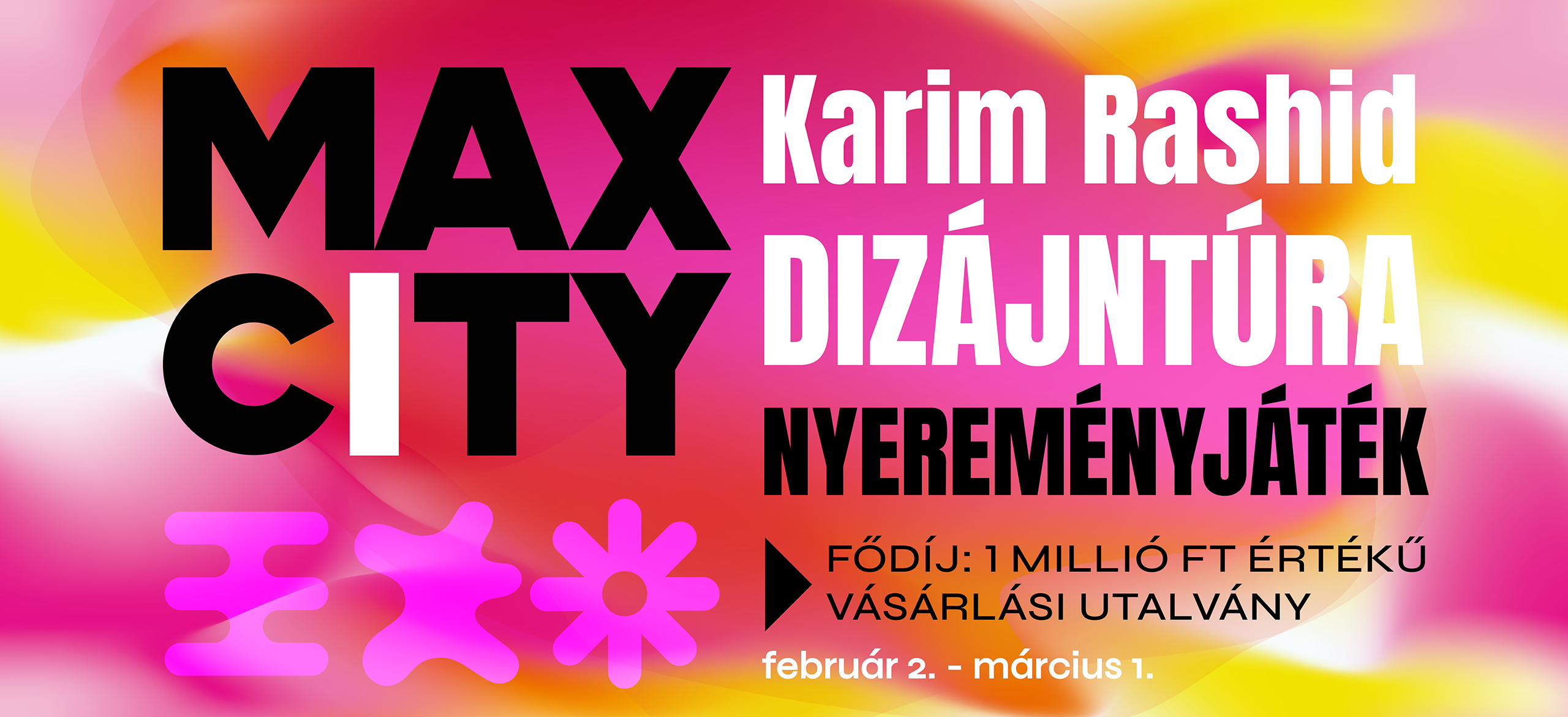 1. Vedd át a Karim Rashid Dizájntúra nyereményfüzetet és térképet a Max Design Pop Up üzletében.