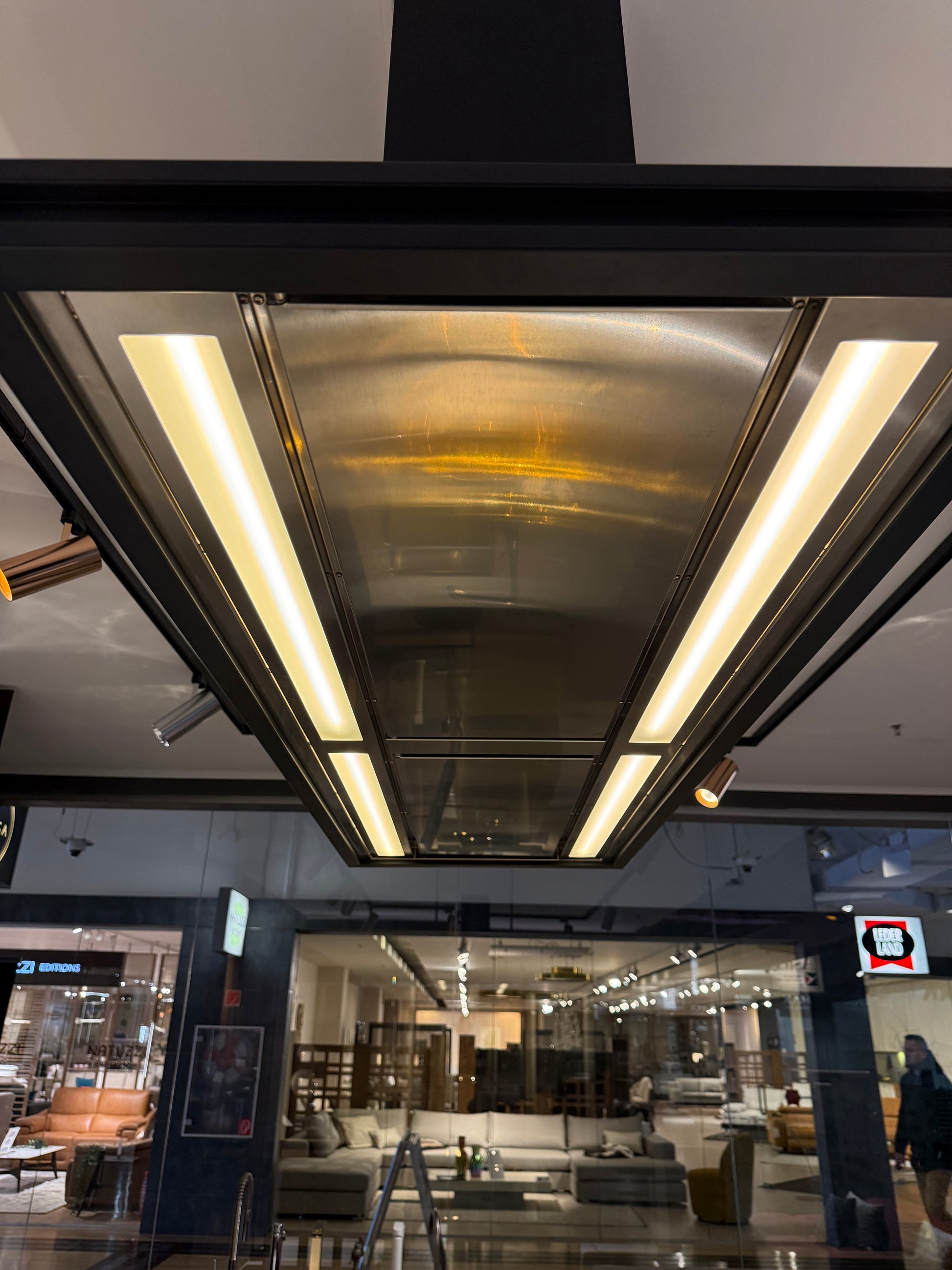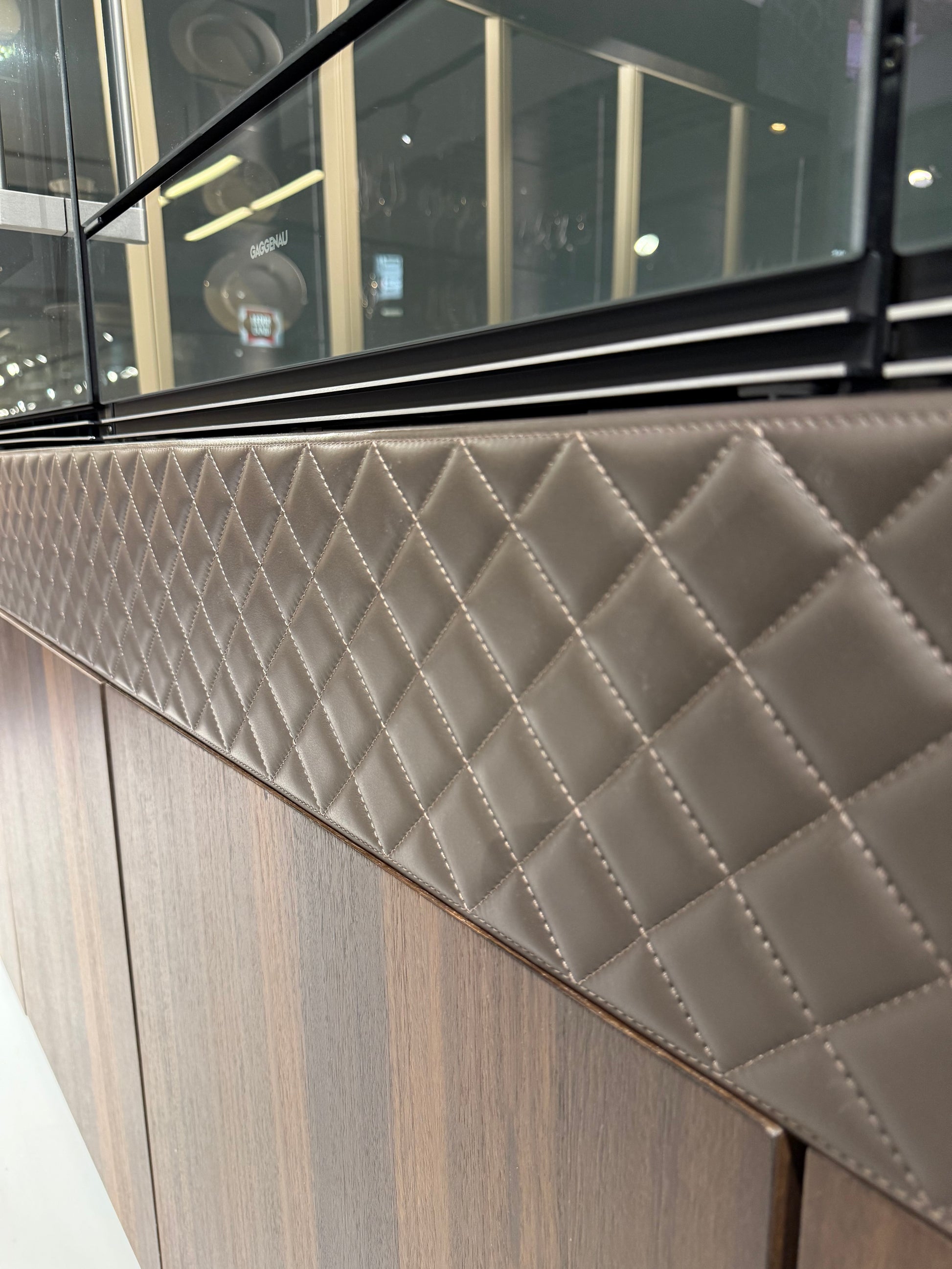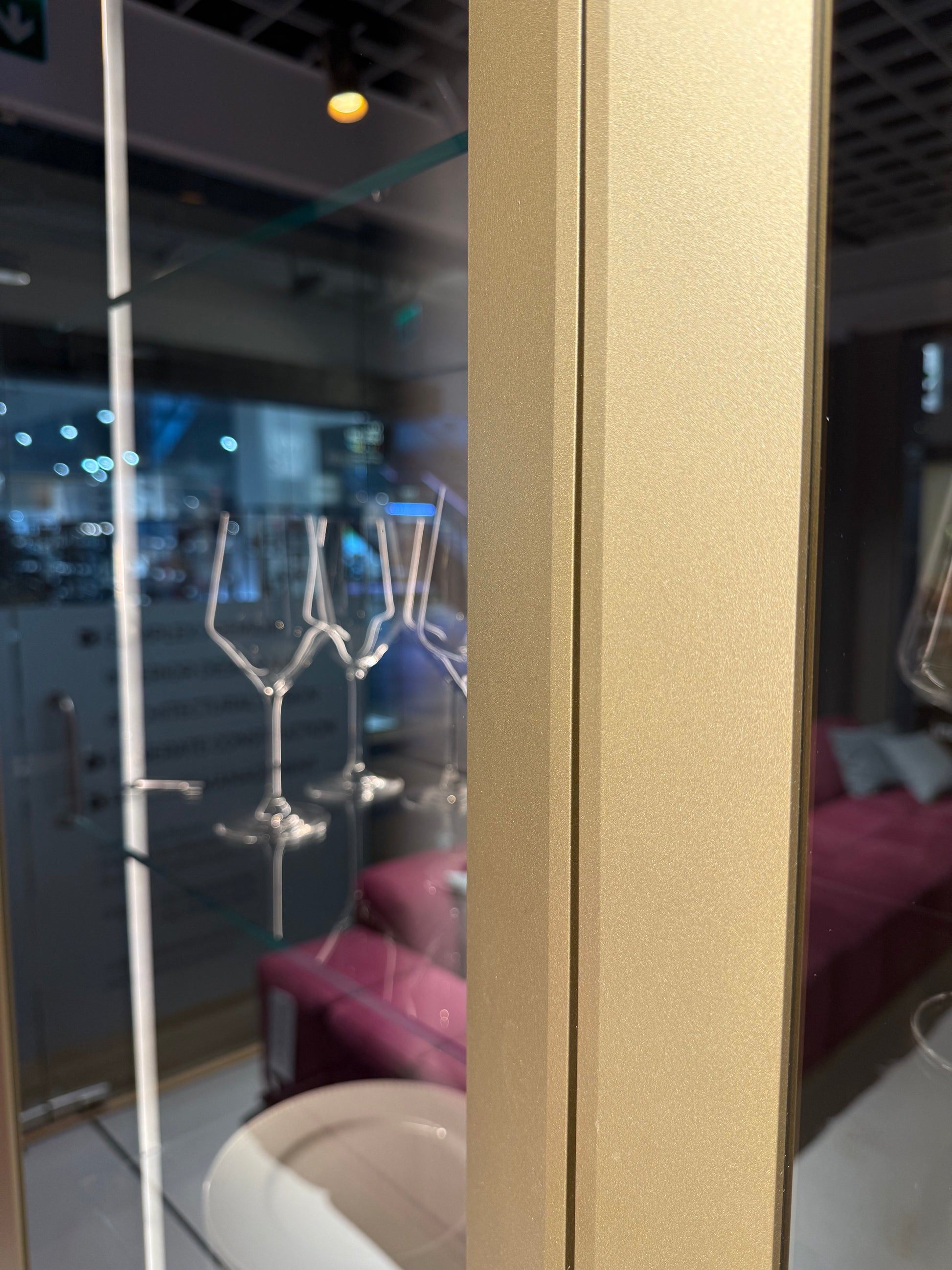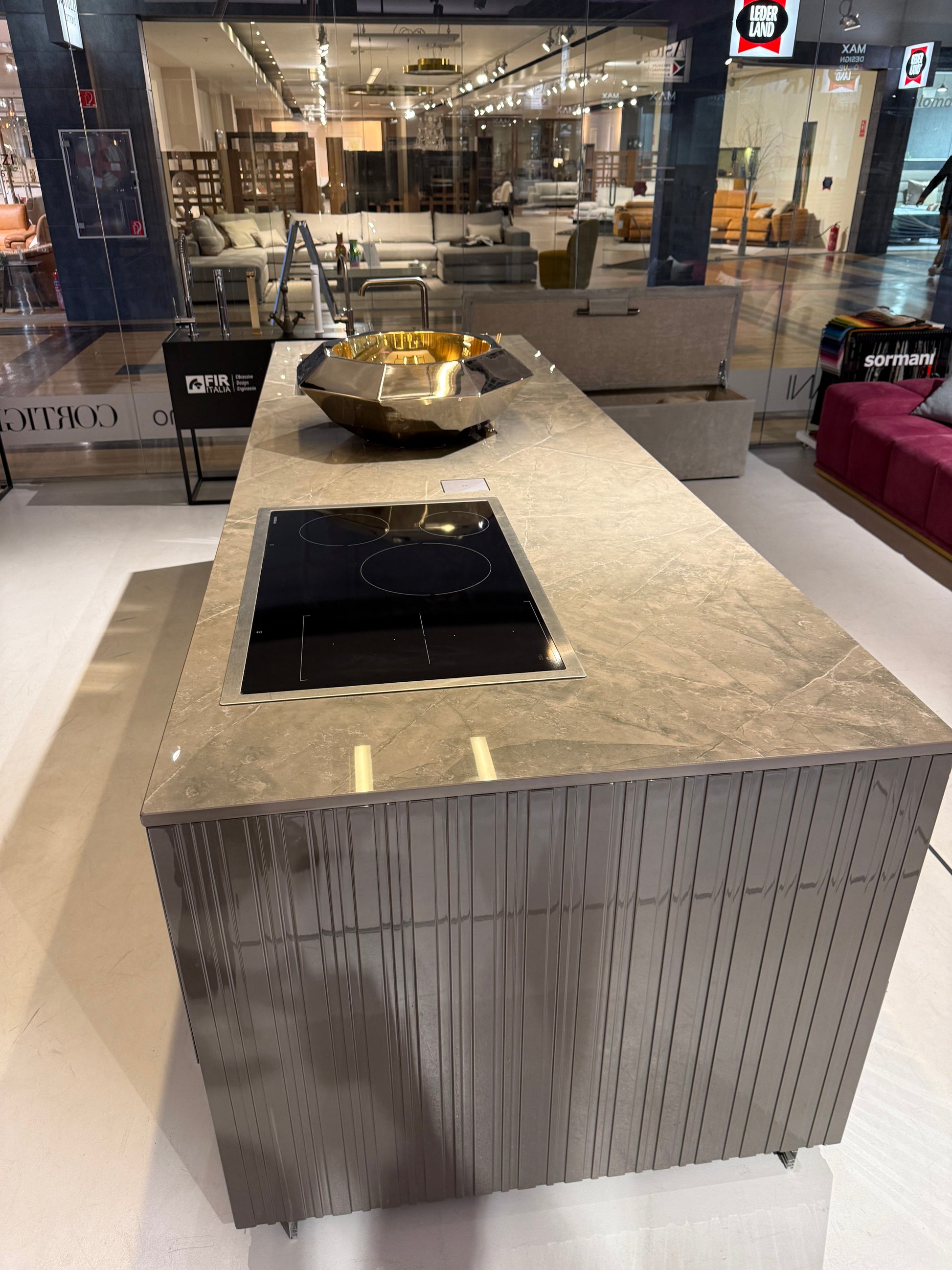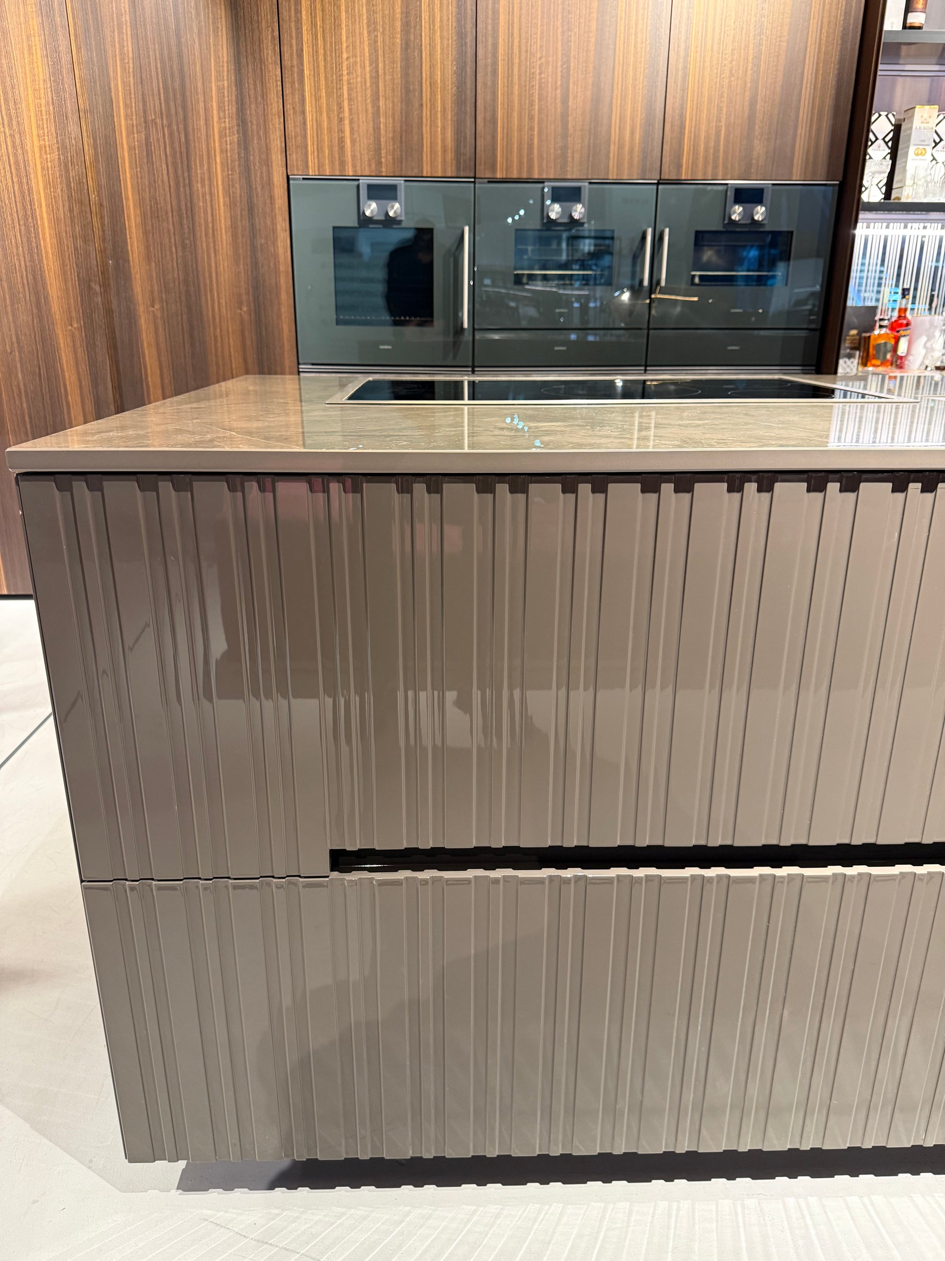 Aster "Pure Glam" Konyha a luxus teteje a csúcskategória megtestesítője. Az Aster gyár Olaszországban pontosabban "Pesaro" városában található - Pavarotti villájához közel. Méltán híres és közkedvelt manufaktúra egyedi konyhái hihetetlen minőséget és luxust képviselnek. A Pure Glam és "textúrái" a fény és az árnyékok útjáról mesélnek. A felületek elnyelnek minden visszaverődést, és visszaadják az anyag eleganciáját. "Gaggenau konyhagépekkel felszerelt, Falmec elszívóval, EUKALIPTUSZ FURNÉROZOTT, Dekton technikai köves munkapult, MOTORIZÁLT azaz "Blum Servo Drive" elektromos működtetési rendszerrel, belső világítással, csúszásgátlós fiók belsők, amerikai dió fiók kávák, nubuk bőrrel borított steppelt fiókok, kihúzható ajtók, szivar humidor és bárszekrény, vitrin LEDdel, alumínium keretek vitrinnél tükör reflexes füst üvegesek és aluminium metál fényezésű aranykerettel, kapszula tartó, magas fényű festett sziget front. Méret : Vitrines rész: 360 magas cm X 167 széles cm, Nagy hosszabb oldali rész bár résszel együtt: 285cm magas X 442cm széles, Sziget: 305cm széles x 102 cm mély.